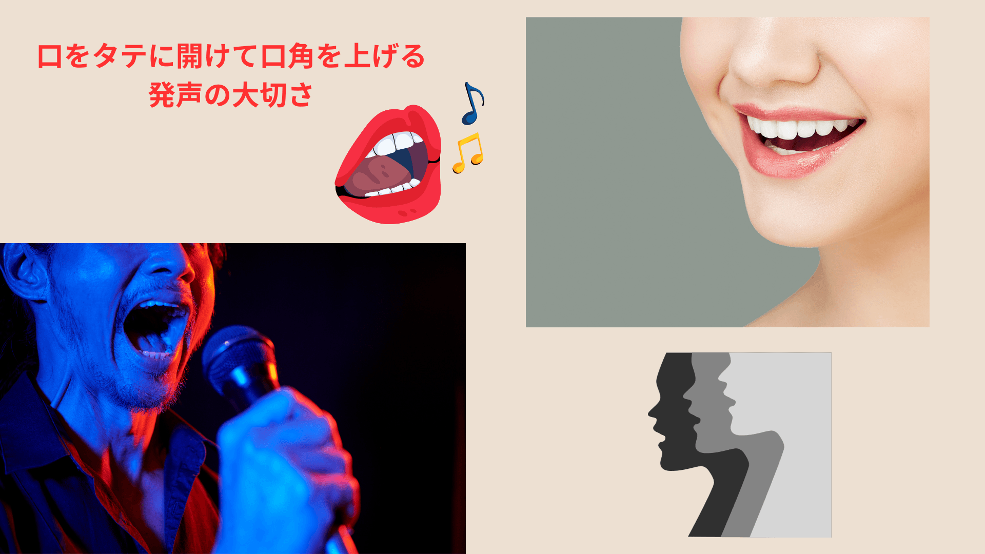 口角を上げることは、表情筋を活性化させるだけでなく、音の響きを明るくし、