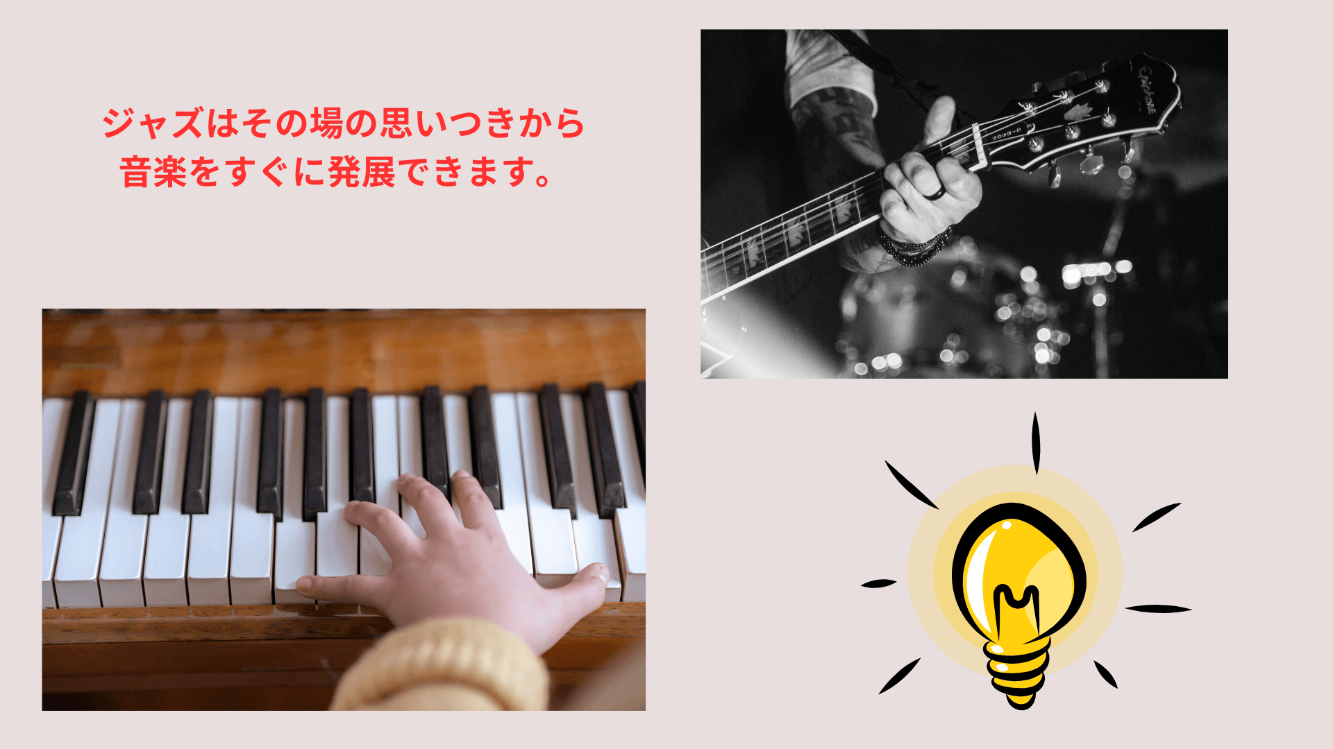 ジャズではその場で生まれるアイデアを基に音楽が展開されます。