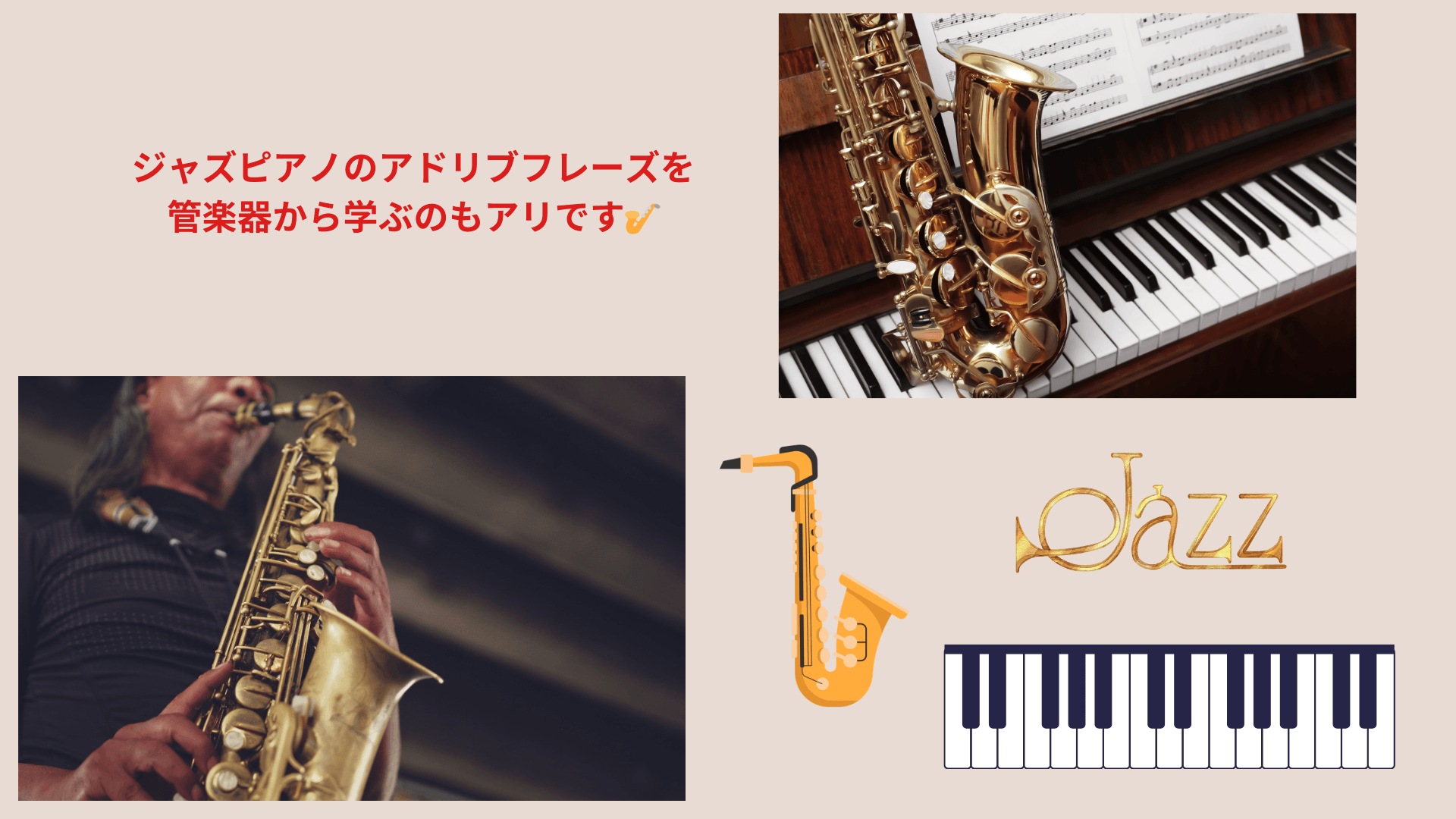 ジャズのアドリブフレーズは、主に管楽器、特にトランペットサックスなどから発展してきました。