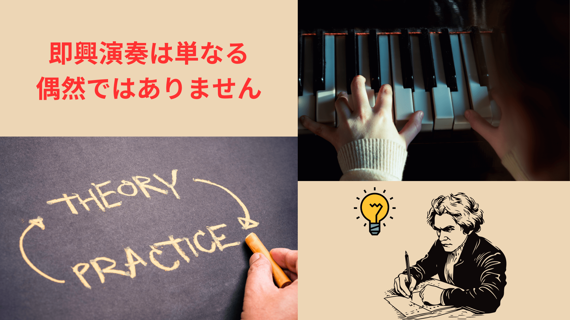 即興演奏においてのひらめきは確かに偶然浮かぶこともありますが、それは膨大な音の組み合わせを認識して弾いたり歌ったりすることで初めて生まれるものです。