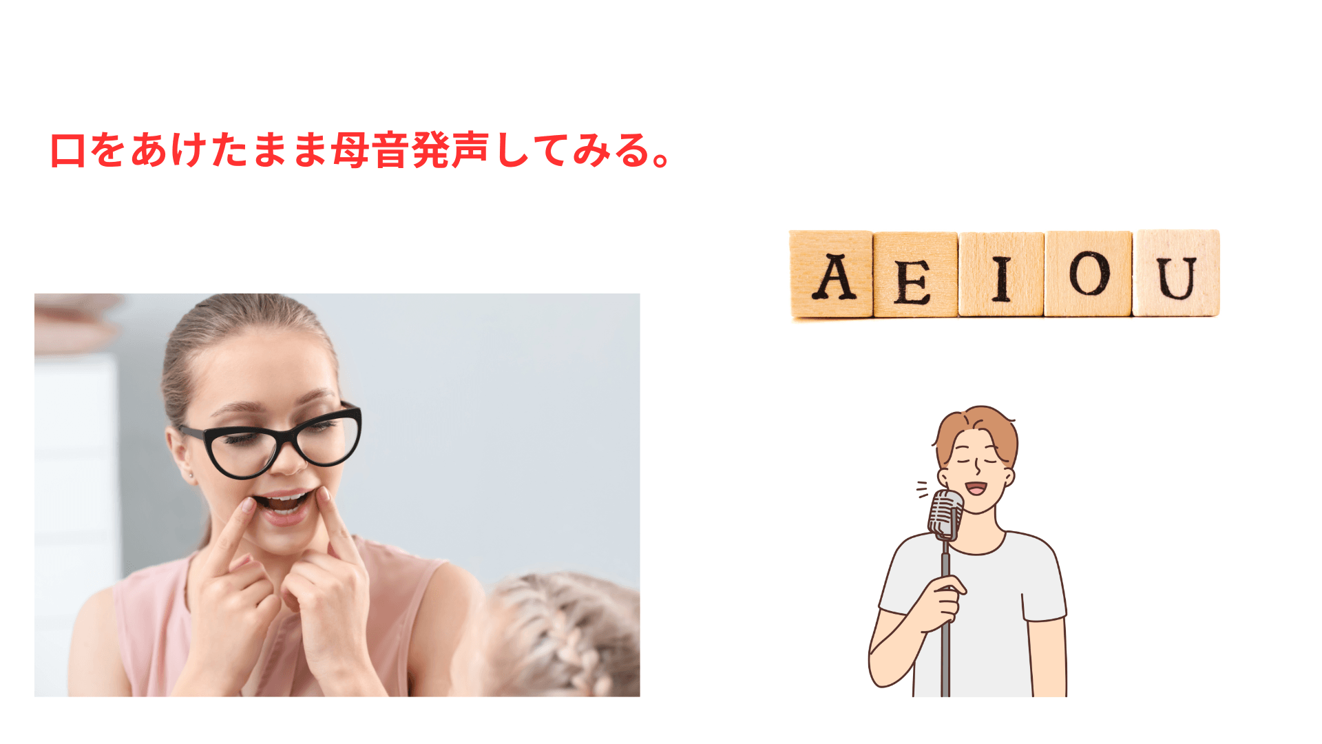 「口を開けたまま母音を発声する」方法をご紹介します。