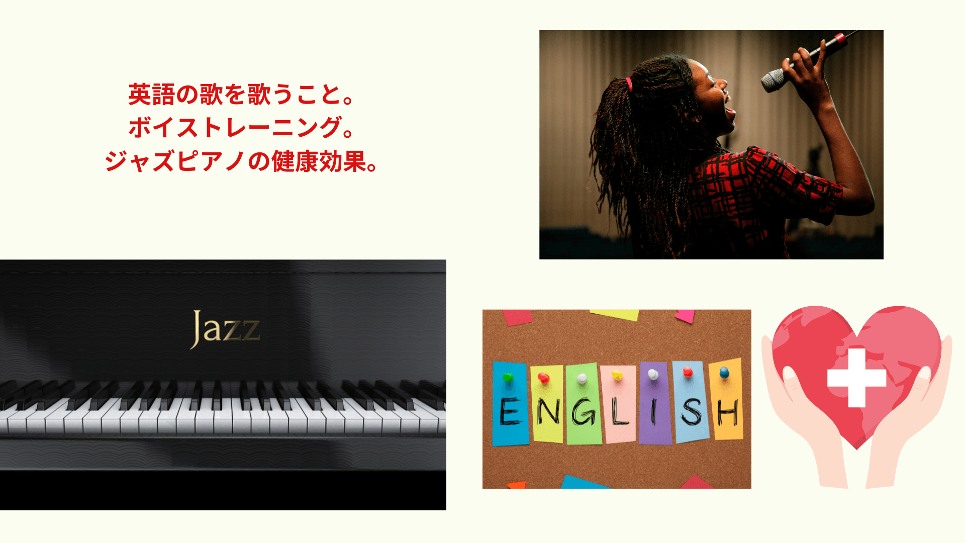 英語の歌を歌うこと、ボイストレーニング、ジャズピアノの演奏は、
