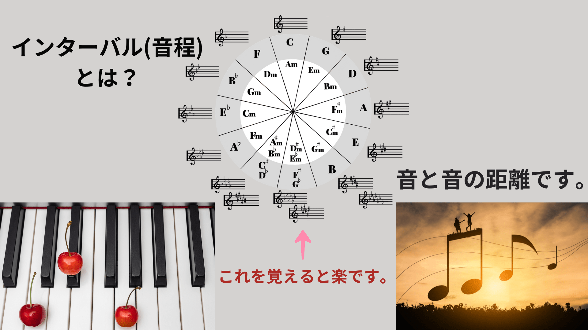 音楽を学ぶときにまず重要なのは、音と音の距離「インターバル(音程)」を理解することです。