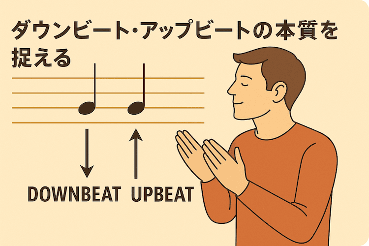 ダウンビートとは何か? ダウンビートは、拍の「表拍」=強調される拍を指します。たとえば4拍子では「1拍目と3拍目」がこれにあたり、リズムに安定感や重みを与えます。 アップビートとは何か? それに続くのがアップビートで、「2拍目と4拍目」にあたり... -