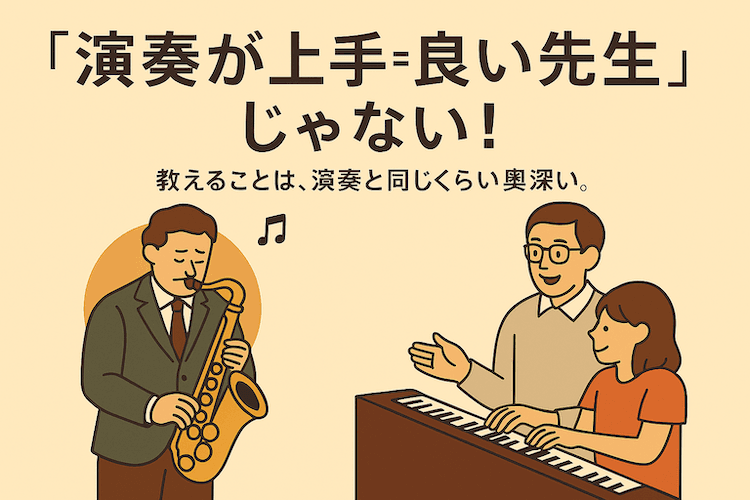 「演奏が上手い先生がいい先生」とは限らない 音楽教室を選ぶ際、どうしても演奏がうまい人=良い先生だと思いがちです。もちろん、演奏力があることは素晴らしいこと。でも、演奏が上手いことと教えることは別の能力だと、私は実感しています。 教える力... -