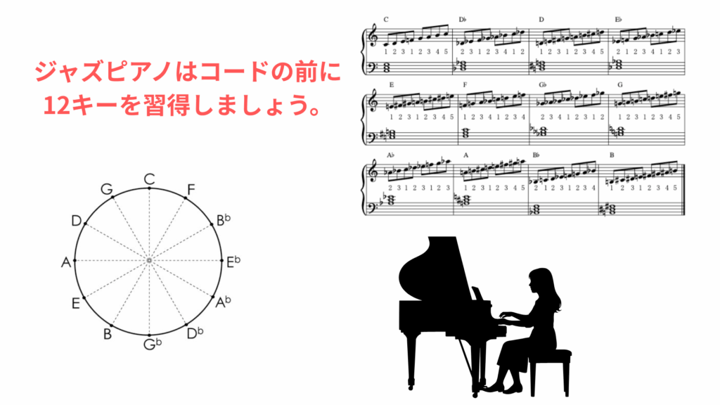 コードよりも12キーが重要な理由 ジャズピアノを学ぶとき、多くの人がまず「コードを覚えよう」と考えます。しかし実際には、すべての調(12キー)を弾ける基礎力を養うことの方が先決です。 12キーを習得するメリット ジャズの即興演奏では、転調や異なる... -